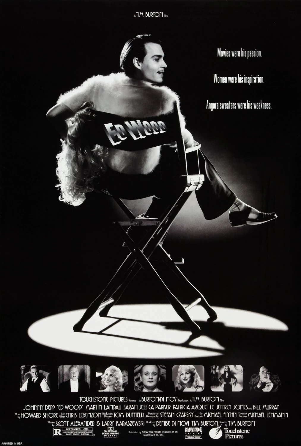Ed Wood is a 1994 American biographical comedy-drama film directed and produced by Tim Burton and starring Johnny Depp as the eponymous cult filmmaker. The film concerns the period in Wood's life when he made his best-known films as well as his relationship with actor Bela Lugosi, played by Martin Landau. Sarah Jessica Parker, Patricia Arquette, Jeffrey Jones, and Bill Murray are among the supporting cast.