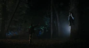 Wednesday runs away but accidentally bumps into Rowan. This connection causes another vision, and she has a premonition about his death. Wednesday chases after Rowan to warn him, but he attacks her first, pinning her to a nearby tree with his powers. Rowan reveals that he was the one who tried to kill her with the gargoyle, saying he is the one who must protect Nevermore. Rowan then shows her an old drawing that foreshadows the coming of a terrible entity, and the woman in the drawing looks a lot like Wednesday. His mother drew it and told Rowan that his destiny was to stop the girl in the picture from destroying the school. Before Rowan can finish the job and kill Wednesday, a mysterious monster appears, seemingly mauling Rowan to death. Wednesday picks up Rowan's drawing and pockets it.